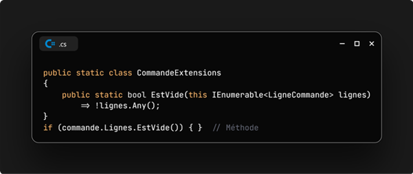 On connait tous les méthodes d'extension. On en utilise beaucoup dans nos projets. Mais devoir mettre des paranthéses sur IsEmpty( ) alors que cela devrait être une propriété, c'est dommage.