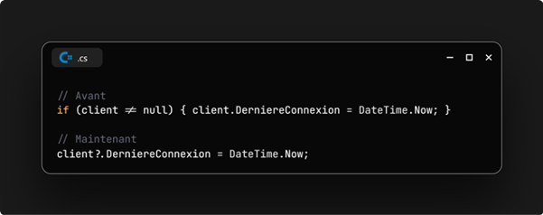 L'opérateur ?. fonctionne maintenant à gauche du =